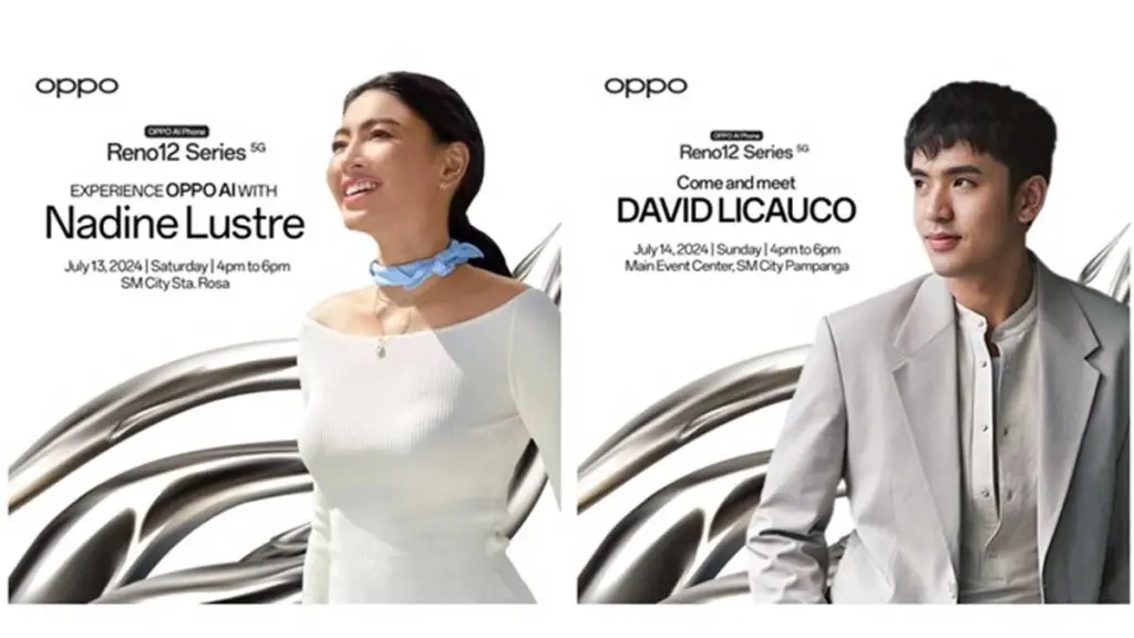This weekend offers a unique opportunity to see Nadine and David up close while enjoying exclusive perks from OPPO. Fans who pre-order their OPPO Reno12 5G or Reno12 Pro 5G until July 13 from any participating OPPO Brand Stores, including SM Dasmarinas, SM Sta. Rosa, SM Bacoor, SM Batangas, SM Calamba, SM Lipa, SM Lucena, SM Clark, SM Pampanga, SM Baliuag, and SM Marilao, will be eligible to participate in the event and win exciting prizes.